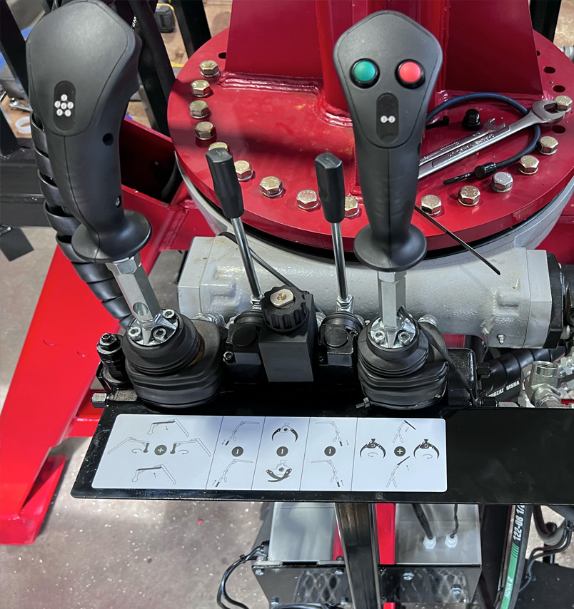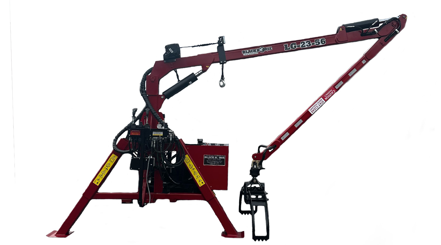 Standard equipment includes joystick with thumb control for grapple opening/closing.